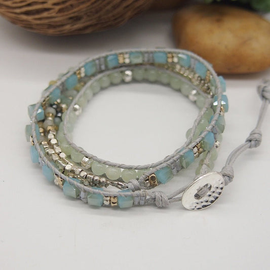 Amazonite Triple Wrap Bracelet Bohemian Beadwork Bracelet